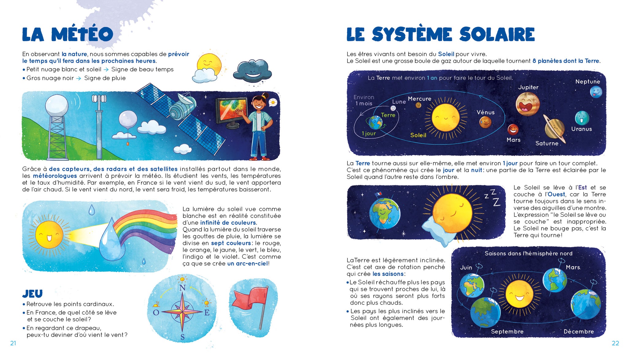 - découvrir le cycle de l’eau, son importance, les orages et le rôle du vent.